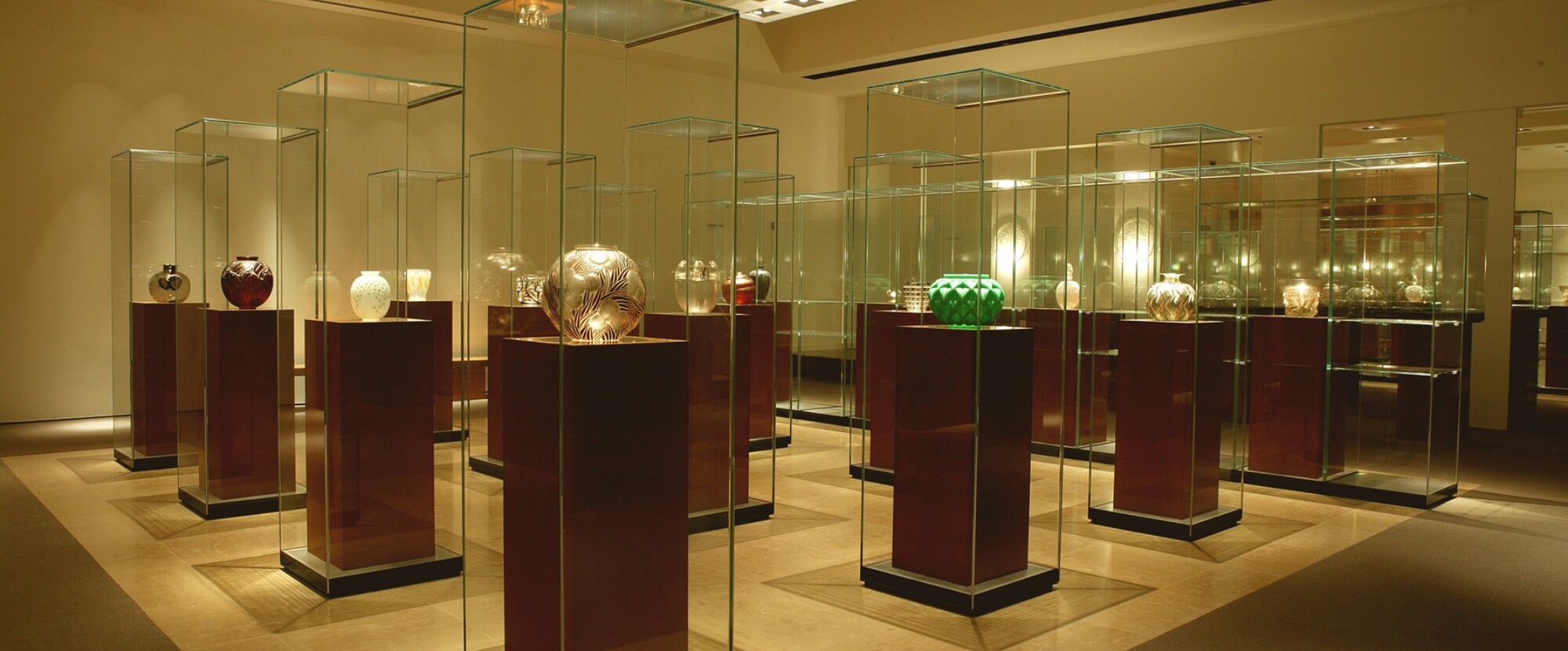 フランス出身のジュエリーとガラスの工芸作家ルネ・ラリックの作品をコレクションした美術館。アール・ヌーヴォーとアール・デコの両時代にわたって活躍したラリックは、ジュエリー作家として名声を得たのち、香水瓶をきっかけに、花器やテーブルウェアなどのガラス作品へと転向します。そして、生涯に渡り、自然や女性をテーマに、独創的で優美なデザインの作品を数多く生み出しました。箱根ラリック美術館では、その美しい作品たちを、箱根の豊かな自然の中で堪能できます。ラリックが室内装飾を手がけた豪華列車オリエント急行のサロンカーも特別展示されており、車内での極上のティータイムは、ここだけでしか味わえない体験です(要現地予約)。