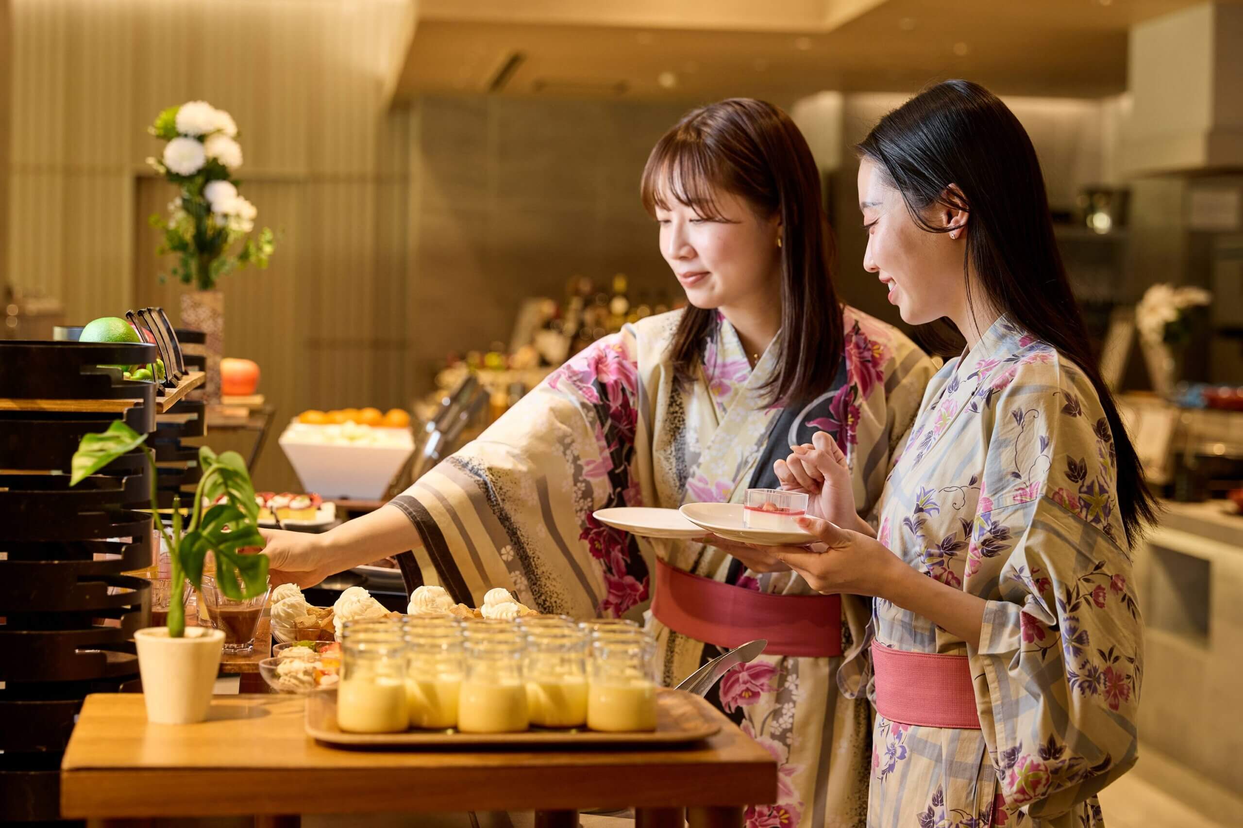 客室に向かう途中で色浴衣を選ぶのも女子旅の醍醐味。早速着替えたら大浴場へ。開放的な露天風呂が、散策の疲れを癒やしてくれます。