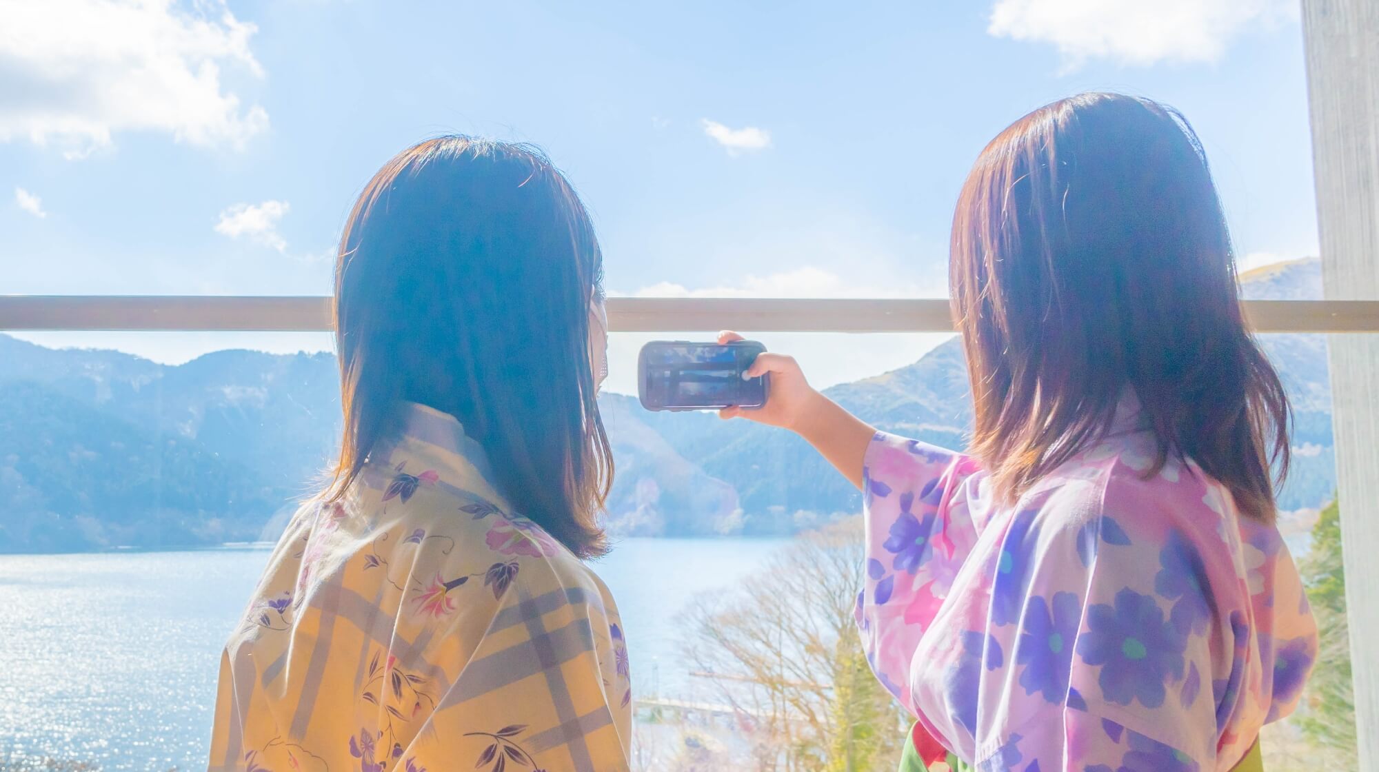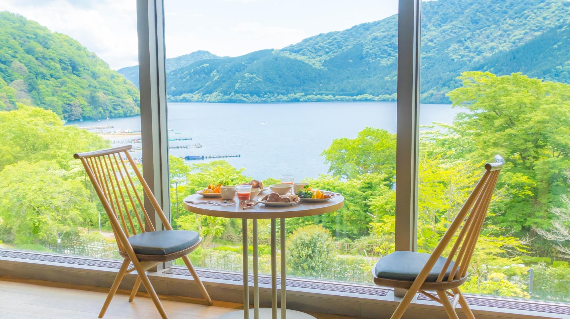 起床、ベランダで朝の芦ノ湖を望み小鳥のさえずりを聞きながらリラックス。目が覚める芦ノ湖の澄んだ景色も、思わず写真に収めたくなるひととき。